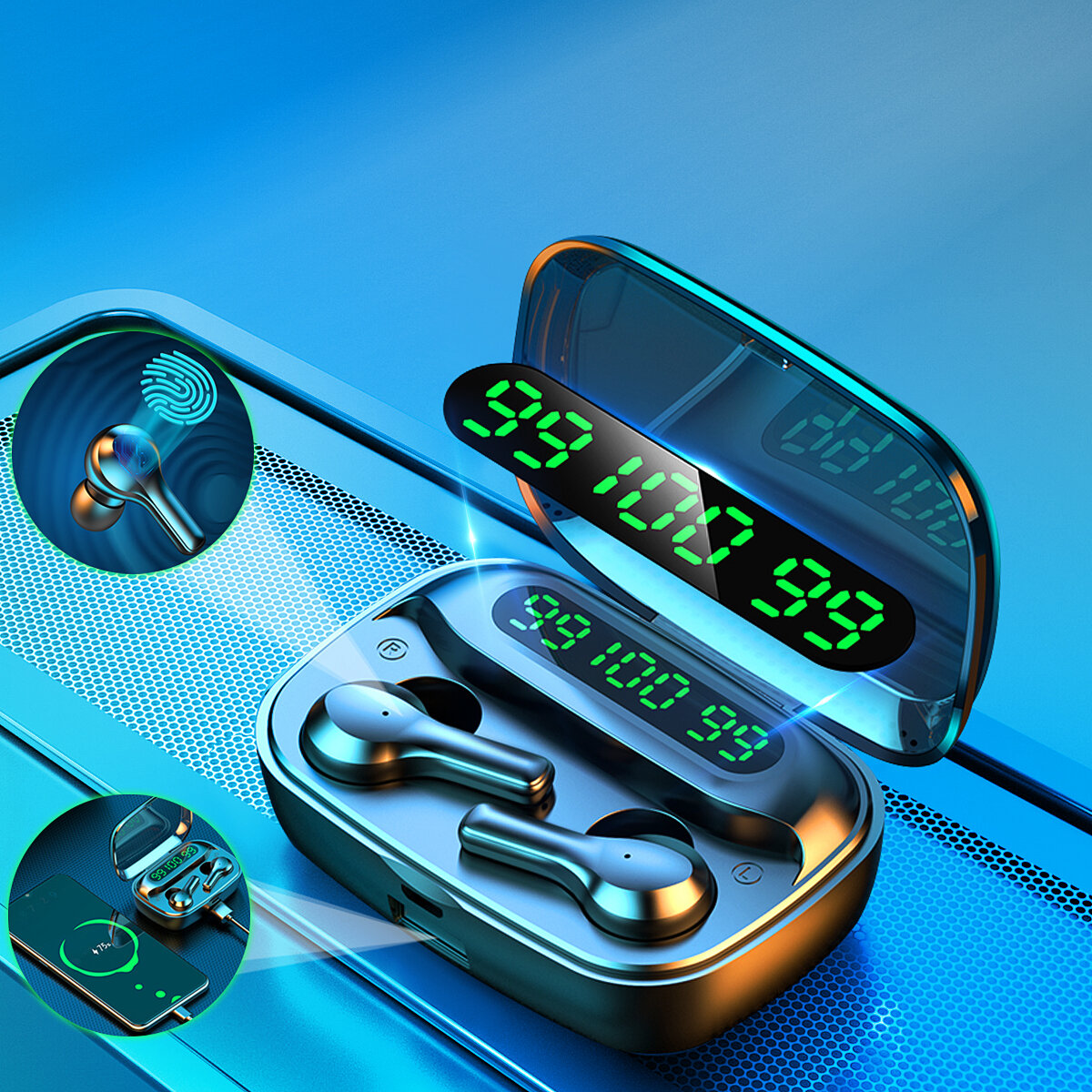 TWS sans fil bluetooth 5.0 ecouteur LED affichage 4500mAh batterie externe contrele tactile 9D casque stereo casque avec micro – Blanc