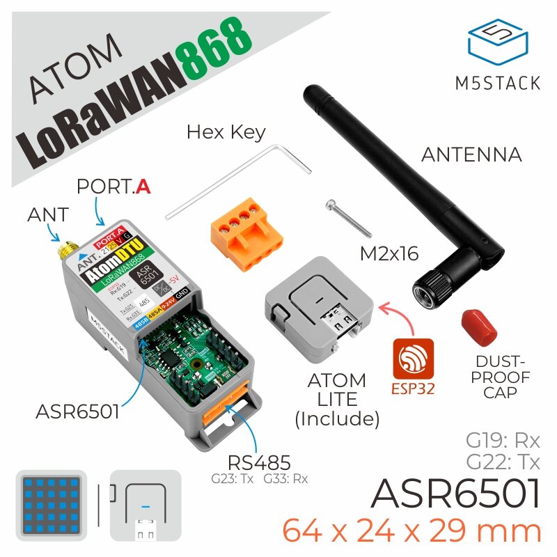 Unite de transmission de donnees ferroviaire programmable M5Stack AtomDTU Module de communication LoRaWAN868Mhz RS485
