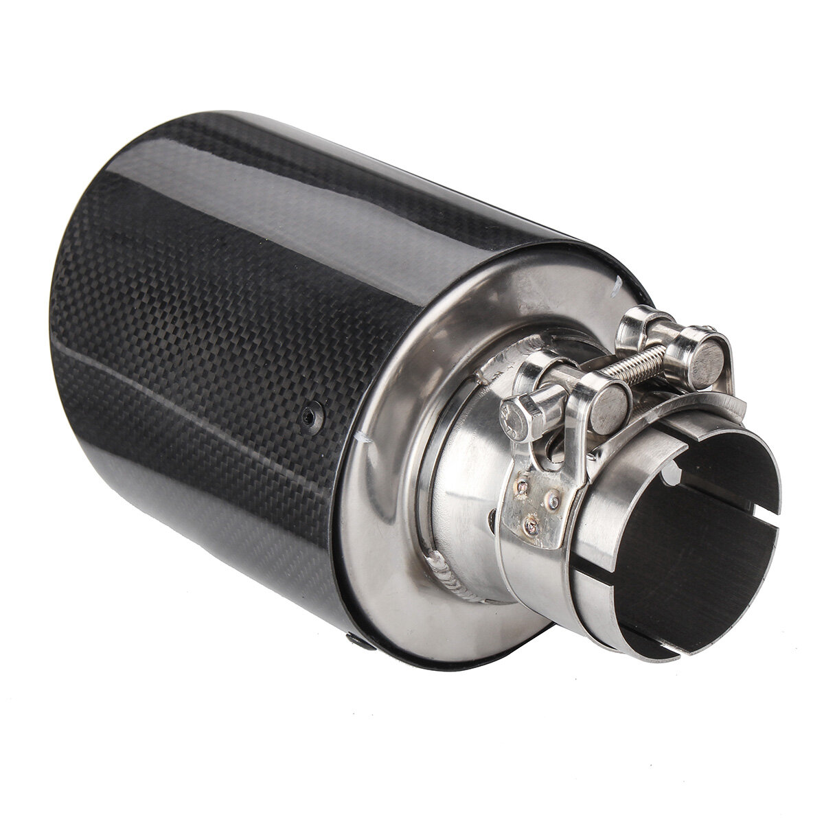 Universal 2″ 54-101mm Glossy Black Carbon Fiber Car Exhaust Tip End Pipe Muffler