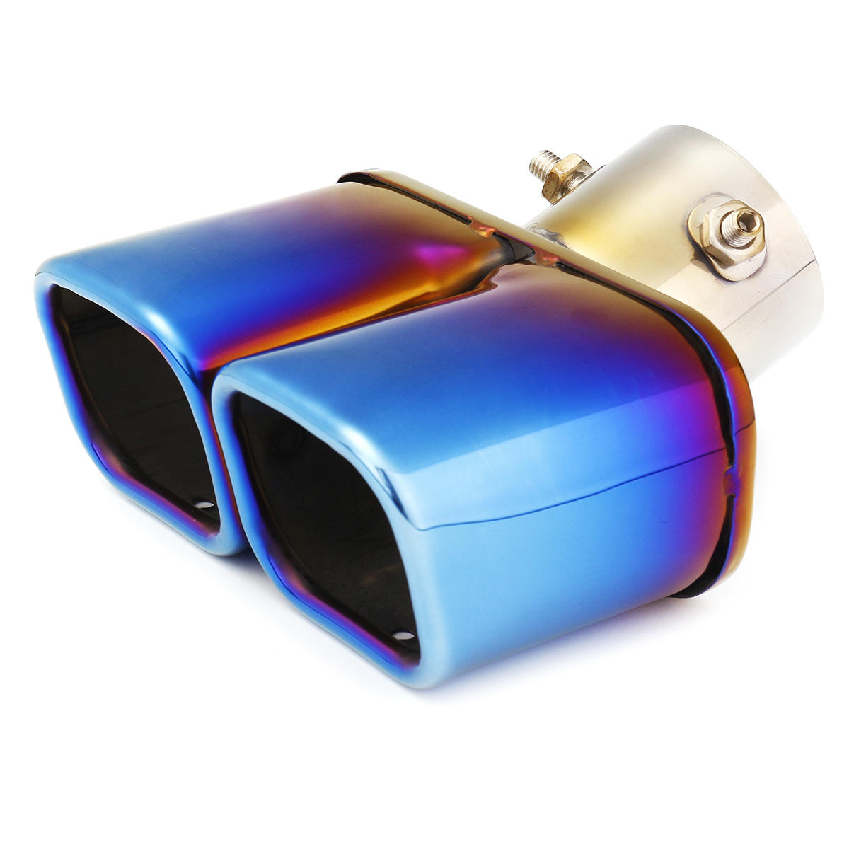 Feature: 1. High quality guarantees long service life. 2. A Symbol of Deluxe Car. 3. Unique Designs with double outlet shows your car to be different and fashion. 4. Easily install that just need you to screw it without welding and drilling. Specification: Placement on Vehicle: Left, Right, Rear Colour: Half-Grilled Blue Material: Stainless Steel Inlet inner Diameter: 63mm Outlet Diameter: 67x158 mm Fitment: Universal fits for most of cars. Package Included: 1 X Stainless Steel Exhaust 1 X Accessory