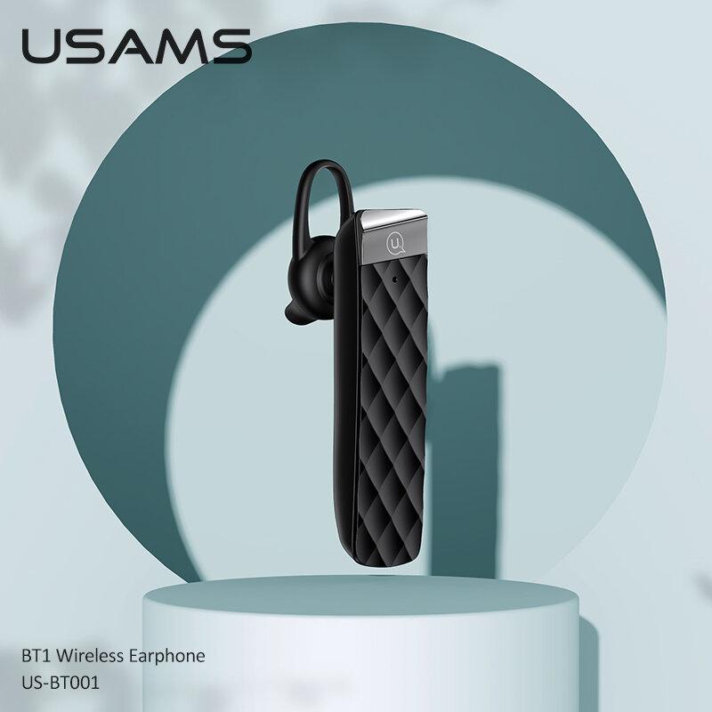 USAMS US-BT001 ecouteur bluetooth unique BT5.0 HIFI reduction du bruit HD appelant casque sans fil d’affaires avec micro – Blanc