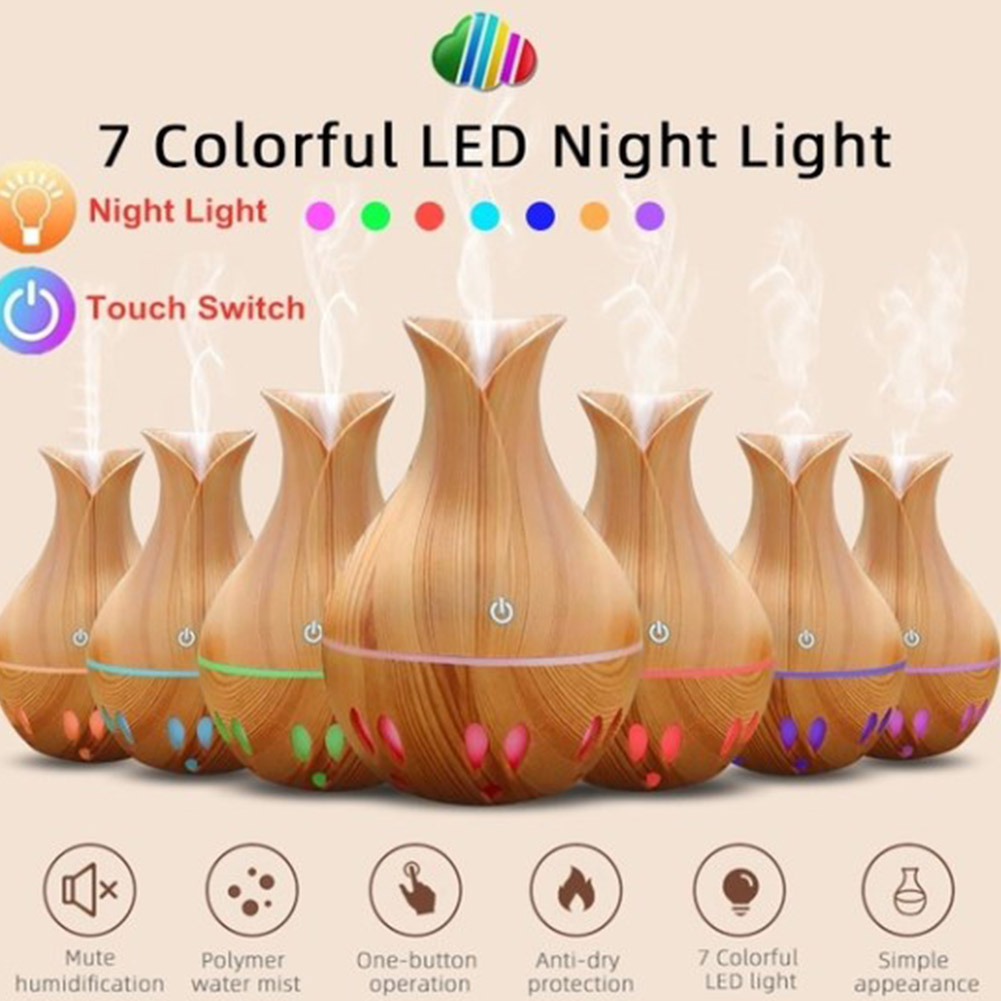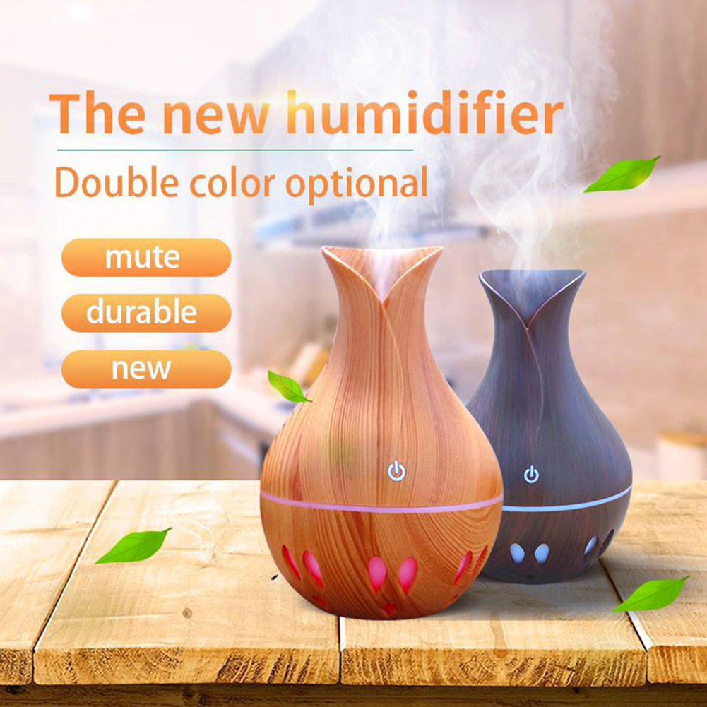 USB Wood Grain Air Humidifier Aromatherapy Diffuser with 7 Colors Change Night Light wood grain