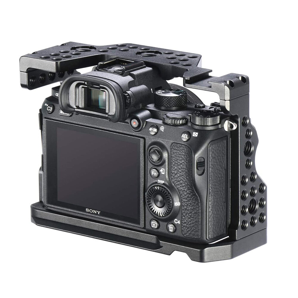 Specialement coneue pour la serie SONY A7 A7III A7M3 A7R3, la cage ne bloque aucun bouton et a toujours acces au remplacement de la batterie.
