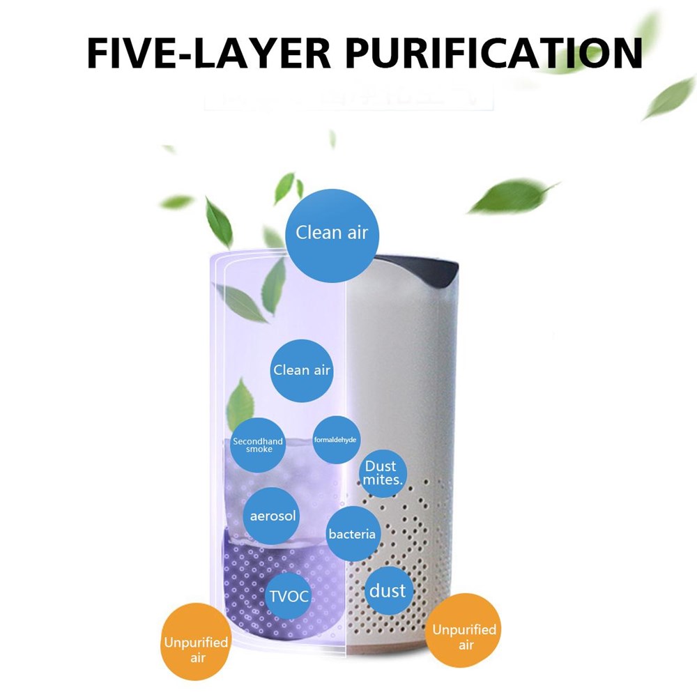 UV Air Purifier Filter Cleaner Anion Home Bedroom Smoke Formaldehyde Sterilizer for Car white quantity