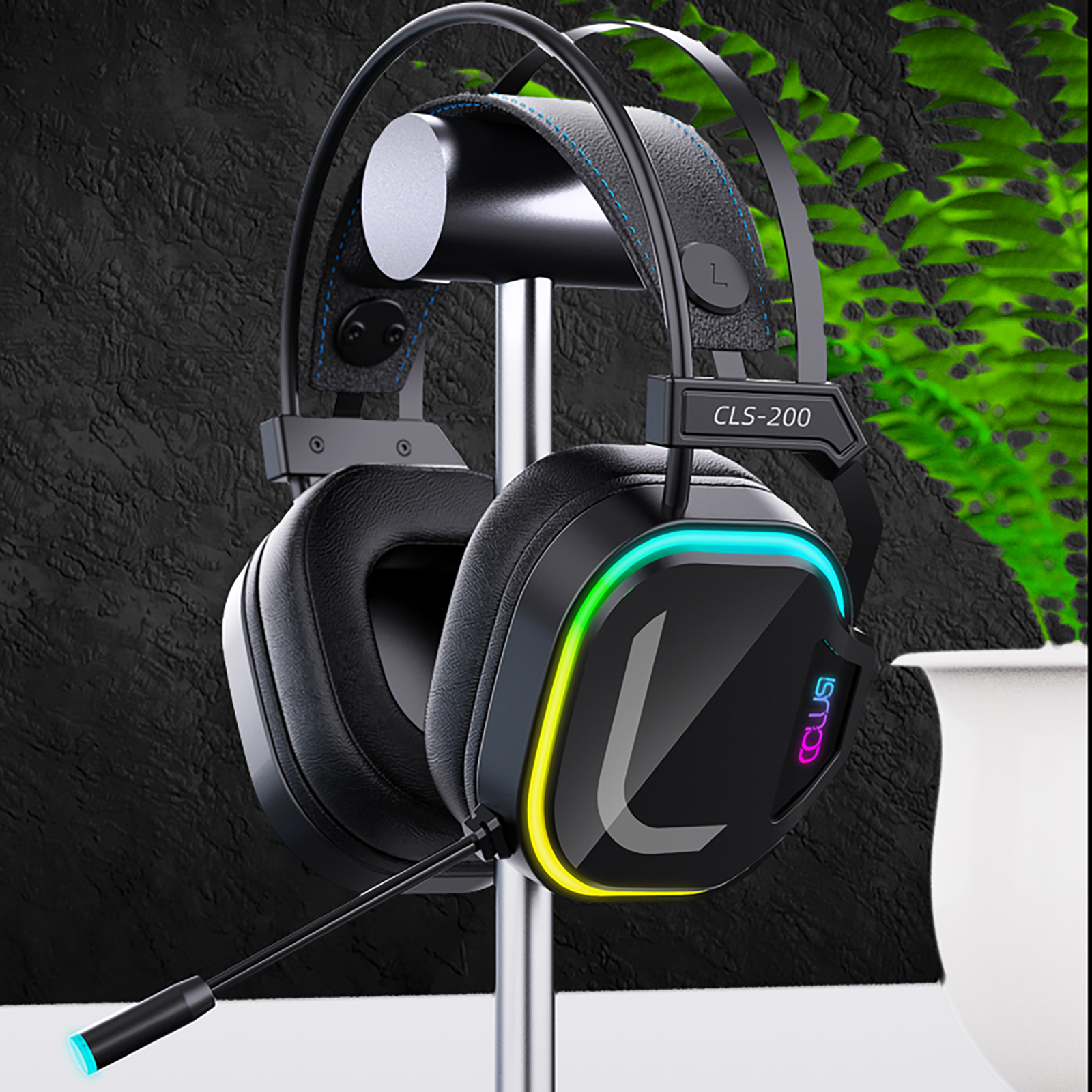 --Lightweight earphone design. Walk while listening.v --50mm drive unit.--Shocking bass amd Stereo left and right.--Omnidirectional microphone.--Comfortable and breathable.--Colorful RGB lighting effect, more cool.