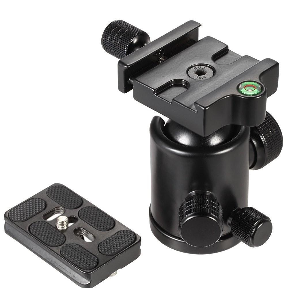 Avec un trou de vis de 3/8 po au fond et une vis d'adaptateur de 1/4 po-3/8 po, la tete spherique convient e la plupart des trepieds sur le marche.