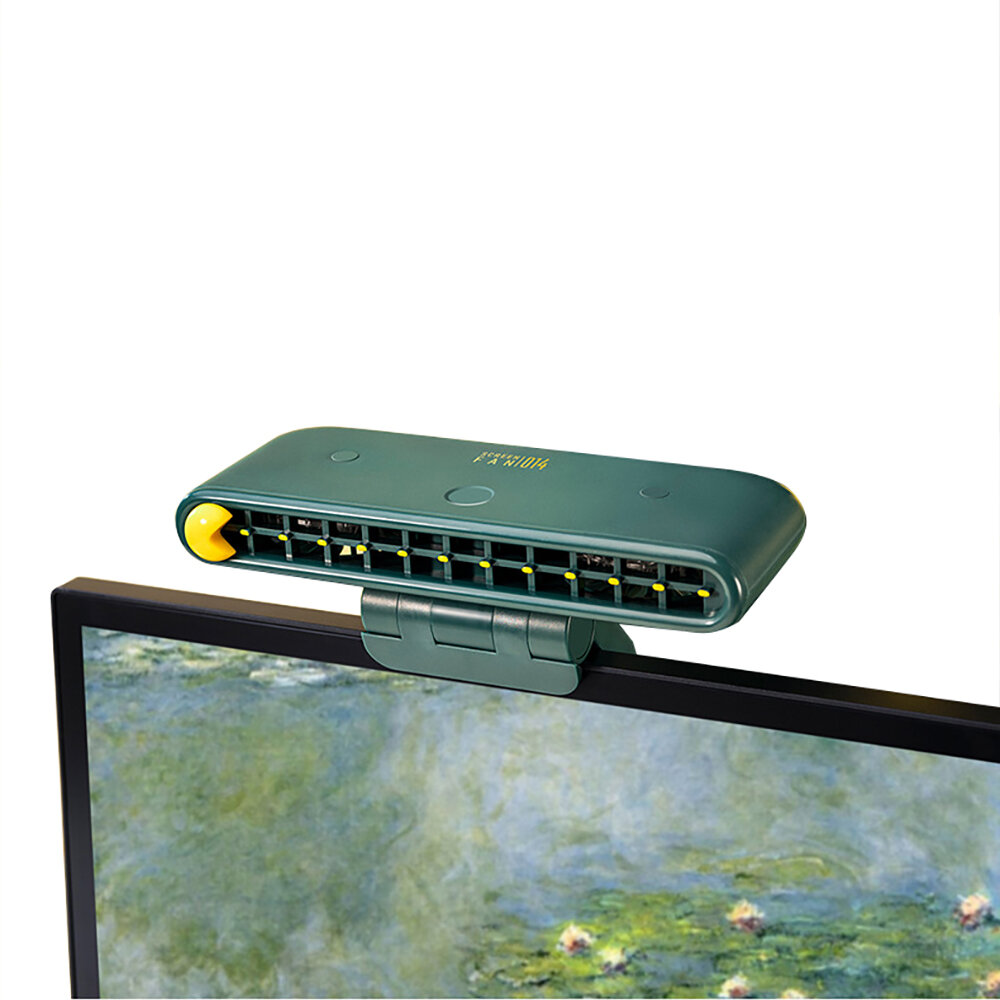 - Il peut etre utilise de deux manieres. Il peut etre accroche e l'ecran ou place sur le bureau. Il peut etre ajuste e 120 e. Il peut etre accroche sur un ecran d'une epaisseur d'environ 30 mm.