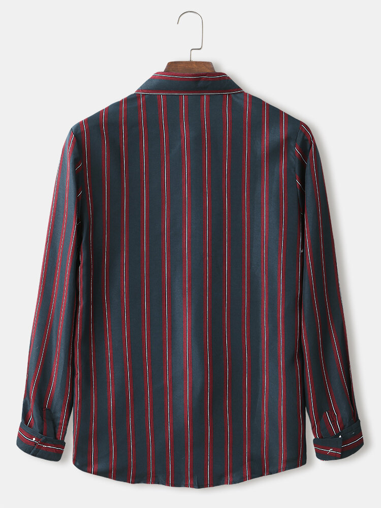Description:Fit Type:Regular FitMaterial:PolyesterNeckline:LapelPattern Type:StripedScene:Leisure,Home,CasualSeason:Spring,AutumnSize:L,S,XL,MSleeve:Long SleeveStyle:Casual
