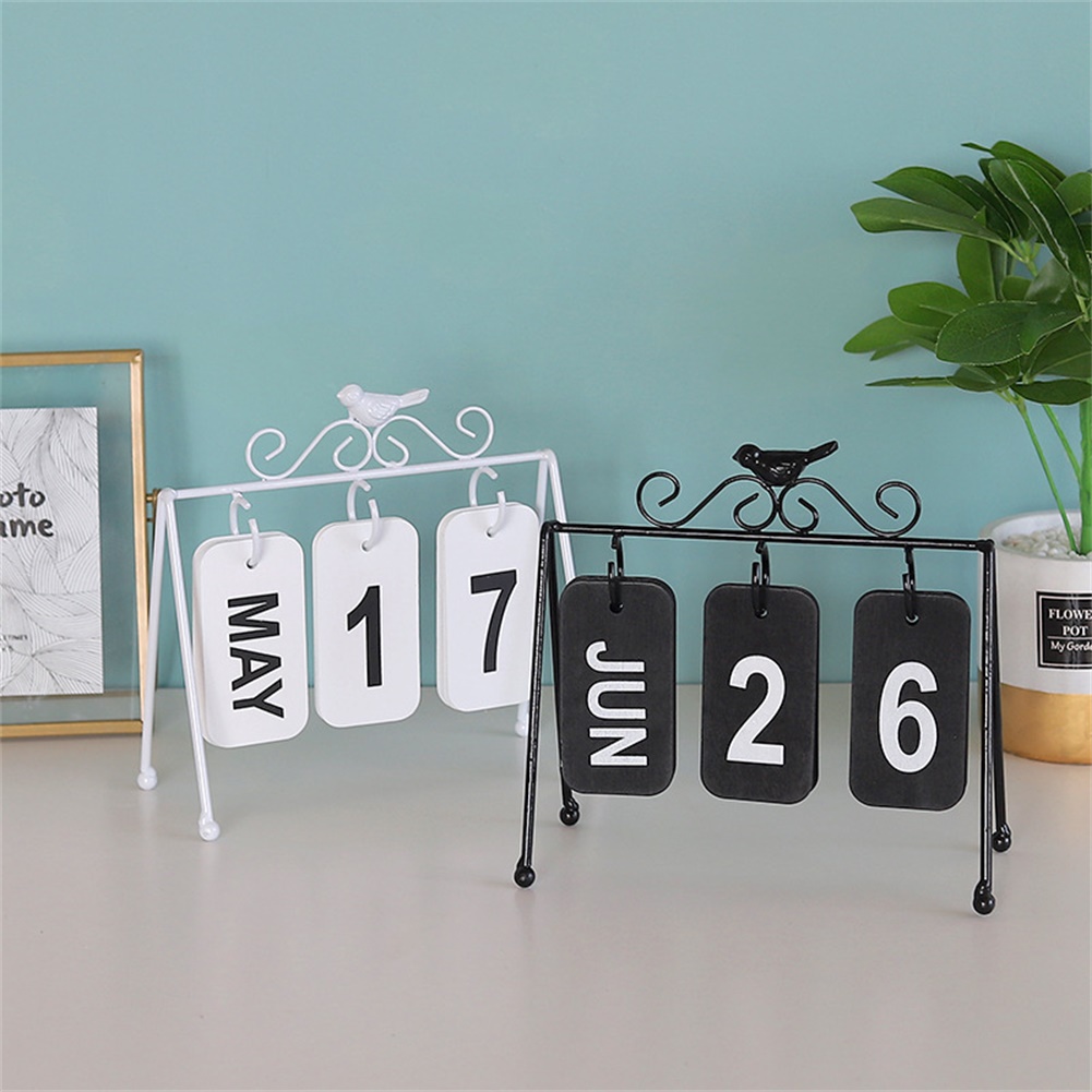 Vintage Flip Calendar Wooden Table Desk Advent Office Desktop Ornaments black