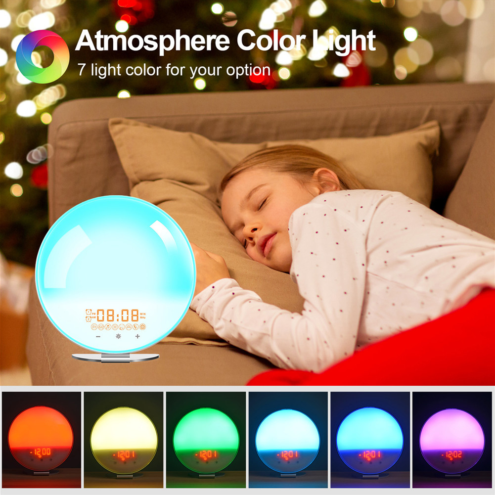 Wake Up Light Sunrise Sunset Alarm Clock Colorful Lights Natural Sounds Aid Bedside Lamp JP Plug
