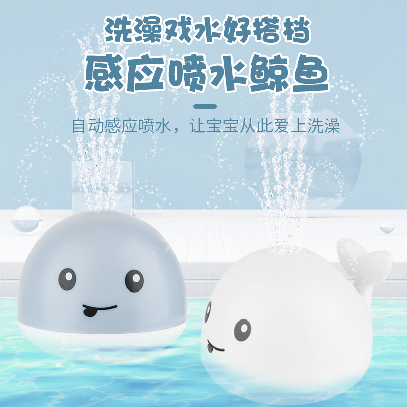 Water Spray Bath Toy Whale Shape Led Light Music Ball Baby Induction jet whale (white) + universal base