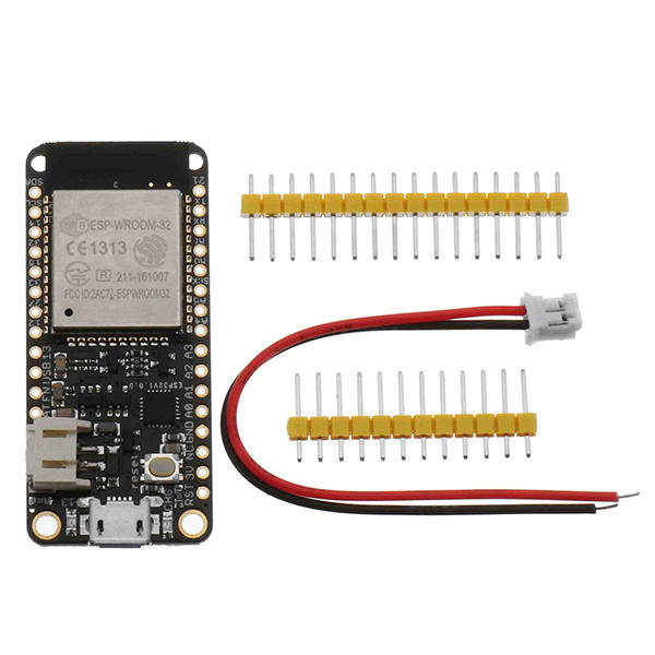 . Broches de puissance: GND - c'est le terrain d'entente pour toute la puissance et la logique BAT - c'est la tension positive e / de la prise JST pour la batterie Lipoly en option USB - c'est la tension positive e / de la prise micro USB si connecte EN - c'est la broche de validation du regulateur 3.3V. Il est tire vers le haut, alors connectez-le e la terre pour desactiver le regulateur 3.3V 3V - c'est la sortie du regulateur 3.3V. Le regulateur peut fournir un sommet de 500mA, mais la moitie de celui-ci est tire par l'ESP32, et c'est une puce assez faim. Donc, si vous avez besoin d'une quantite de puissance pour les choses comme les LED, les moteurs, etc. Utilisez les broches USB ou BAT et un regulateur supplementaire Broches logiques: C'est l'ensemble d'epingles d'E / S e usage general pour le microcontreleur. Toute la logique est 3.3V Le ESP32 fonctionne sur une puissance et une logique de 3,3V, et sauf indication contraire, les broches GPIO ne sont pas securisees pour 5V! Broches serie: RX et TX sont les broches Serial1 supplementaires, et ne sont pas connectes au convertisseur USB / serie. Cela signifie que vous pouvez les utiliser pour vous connecter e des peripheriques UART comme les GPS, les capteurs d'empreintes digitales, etc. La broche TX est la sortie du module. La broche RX est l'entree dans le module. Les deux sont une logique de 3,3 V I2C & SPI epingles: Vous pouvez utiliser le ESP32 pour contreler les appareils I2C et SPI, les capteurs, les sorties, etc. Si vous utilisez avec Arduino, les peripheriques standard Wire et SPI fonctionnent comme vous vous attendez! Notez que les broches I2C ne sont deje pas equipees de resistances pullup! Vous devez les ajouter si vous souhaitez communiquer avec un peripherique I2C GPIO & Pins analogiques: Il y a des tonnes de GPIO et des entrees analogiques disponibles pour vous connecter aux LED, boutons, commutateurs, capteurs, etc. Voici les autres broches disponibles. Rangee du bas: A0 - il s'agit d'une entree analogique A0 et d'une sortie analogique DAC2. Il peut egalement etre utilise comme GPIO # 26 A1 - il s'agit d'une entree analogique A1 et d'une sortie analogique DAC1. Il peut egalement etre utilise comme GPIO # 25 A2 - il s'agit d'une entree analogique A2 et GPI # 34. Notez que ce n'est pas une broche capable de produire des resultats! A3 - il s'agit d'une entree analogique A3 et egalement GPI # 39. Notez que ce n'est pas une broche capable de produire des resultats! A4 - il s'agit d'une entree analogique A4 et GPIO # 36 A5 - il s'agit d'une entree analogique A5 et GPIO # 4 21 - Pele n e 21 d'usage general Rangee du haut: 13 - C'est GPIO # 13 et une entree analogique A12. Il est egalement connecte au LED rouge e cete du port USB. Il est egalement connecte au LED rouge e cete du port USB 12 - C'est GPIO # 12 et une entree analogique A11. Cette broche a une resistance debrochable integree, nous vous recommandons de l'utiliser uniquement comme sortie ou de veiller e ce que le demarrage ne soit pas affecte pendant le demarrage. 27 - Ceci est GPIO # 27 et aussi une entree analogique A10 33 - Ceci est GPIO # 33 et une entree analogique A9. Il peut egalement etre utilise pour connecter un cristal de 32 KHz. 15 - Ceci est GPIO # 15 et une entree analogique A8 32 - Ceci est GPIO # 32 et une entree analogique A7. Il peut egalement etre utilise pour connecter un cristal de 32 KHz. 14 - Ceci est GPIO # 15 et une entree analogique A6 http://www.silabs.com/products/development-tools/software/usb-to-uart-bridge-vcp-drivers Here are: https://espressif.com/en/products/hardware/esp32/overview Microcontreleur Tensilica LX6 dual core 240 MHz avec 600 DMIPS SRAM integree de 520 Ko emetteur-recepteur Wi-Fi integre 802.11b / g / n HT40, bande de base, pile et LWIP Bluetooth double mode integre (classique et BLE) 4 MByte flash Antenne PCB embarquee Amplificateur analogique e tres faible bruit Capteur Hall 10x interface tactile capacitive Oscillateur e quartz de 32 kHz 3 x UART (seulement deux sont configures par defaut dans le support IDE Feather Arduino, un UART est utilise pour le demarrage / debogage) 2 x I2C (un seul est configure par defaut dans le support IDE Feather Arduino) 12 canaux d'entree ADC 2 x I2S Audio 2 x DAC PWM / timer entree / sortie disponible sur chaque broche GPIO Interface de debogage OpenOCD avec un tampon TRAX de 32 Ko SDIO maetre / esclave 50 MHz Prise en charge de l'interface de carte SD Emballage inclut: 1 x Wemose TTGO ESP32 Module Dev WiFi + Bluetooth 4 Mo Flash