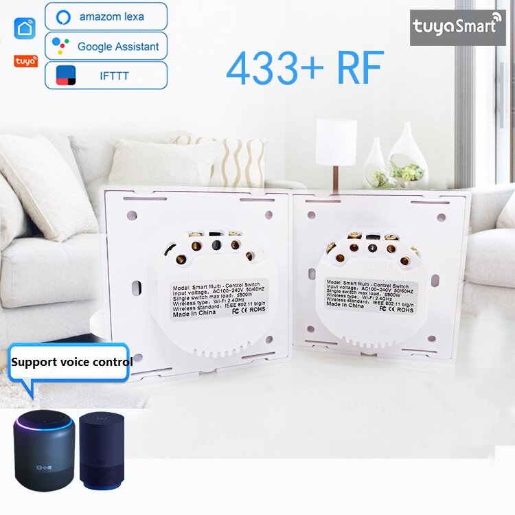 WF-ES012 Wifi + RF433 Tuya Smart EU Dual Control 2Gang Switch fonctionne avec Amazon Alexa Google Home