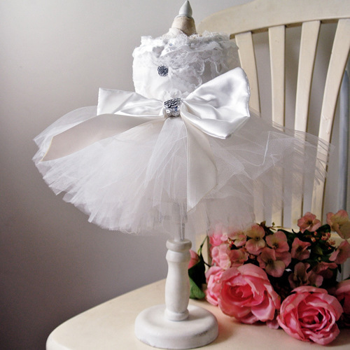 White Multi Layer Princess Wedding Dress for Pet Cats Dogs Teddy Wear White_12#