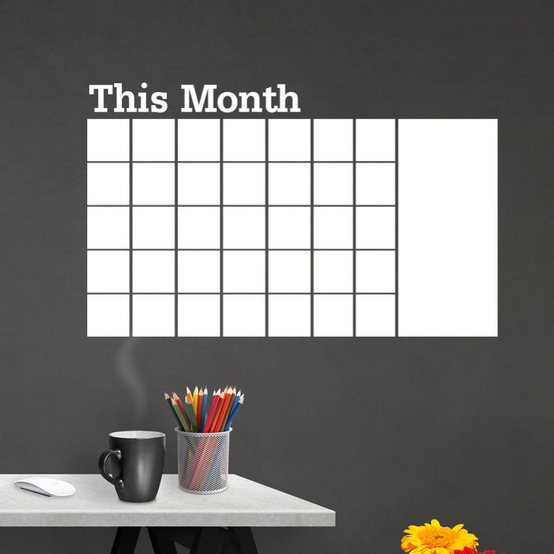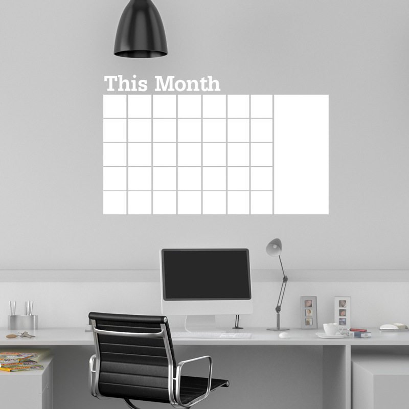 White This Month Calendar Wall Sticker for Office Home Decoration white