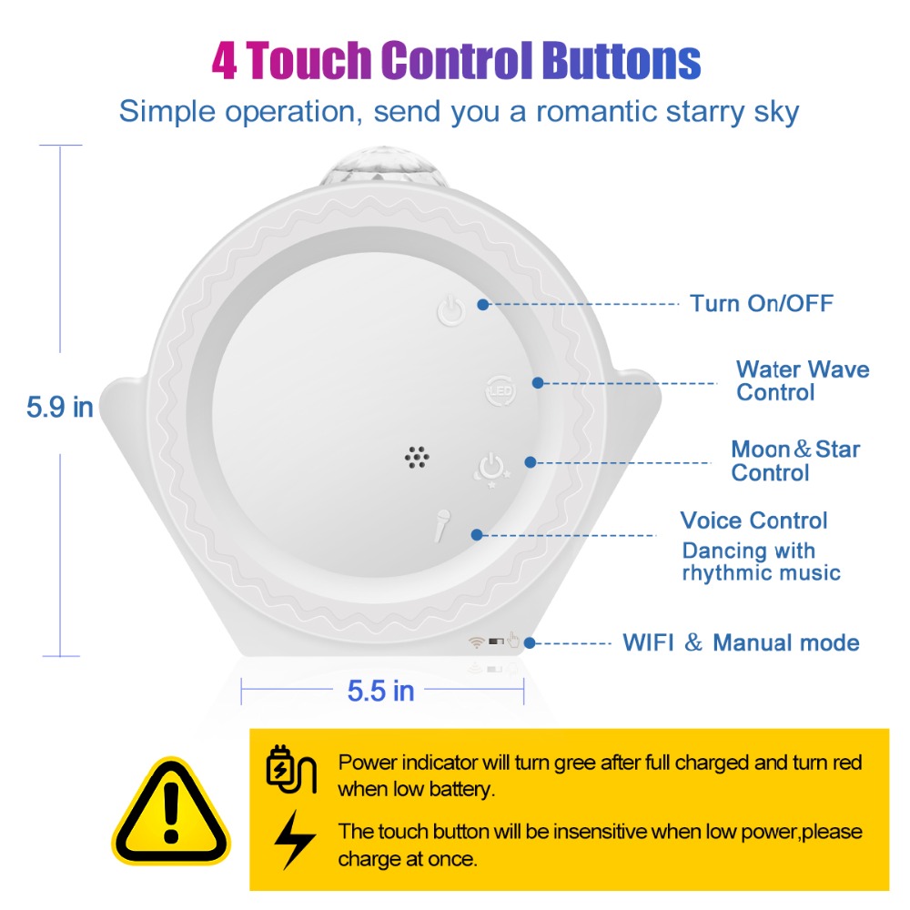 The control mode is divided into two levels (switching mode by toggle switch): One. Manual mode, that is, you can use manual mode to switch functions by touching the button WiFi mode; mobile app or smart speaker control function switch Timing module: can set the automatic shutdown time of the product Intelligent control; you can use intelligent speakers, such as Amazon echo, Google assistant voice control 3 in 1 Moonlight: Switch, color switch, brightness adjustment, etc