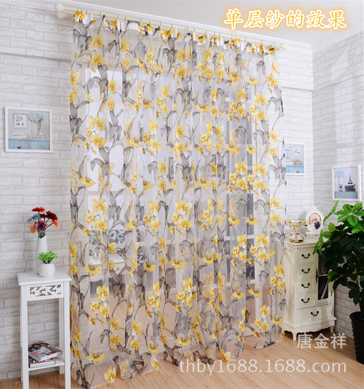 Window Curtain Tulle with Yellow Floral Printing for Bedroom Living Room Balcony 1m wide * 2m high_Yellow yarn