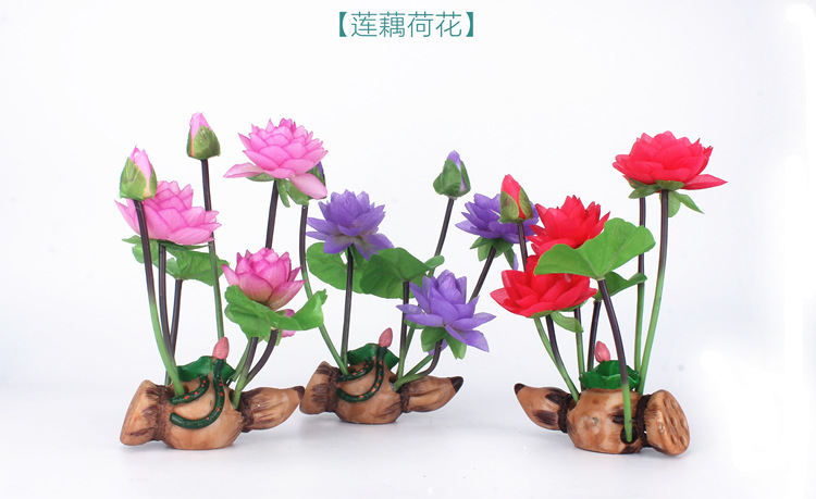 Wine Barrel Lotus Shape Decor Resin Crafts for Fish Bowl Aquarium Accessaries root lotus deep purple