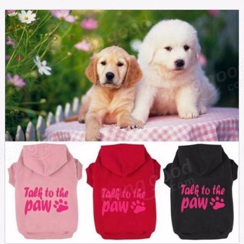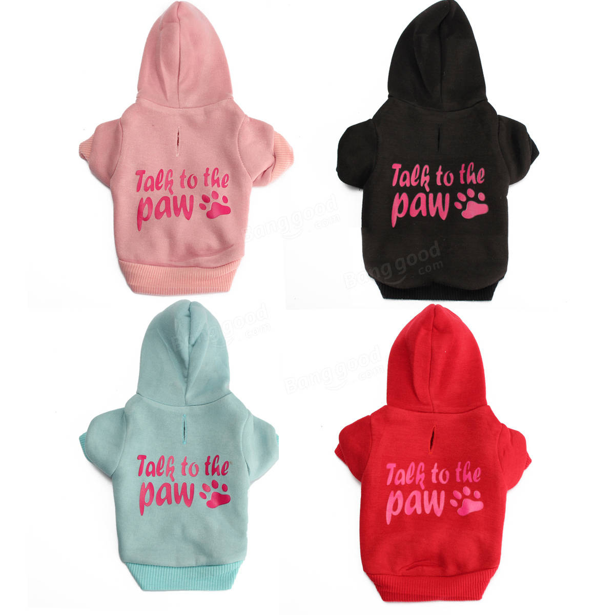 Description:Winter Pet Puppy Dog Warm Coat Hoodie Talk to The Paw Print XS to XLThere is a talk to the paw and food print on the hoodie, you pet will look cool wearing thisThe coat is made of cotton material, it will keep your pet warm in the winter