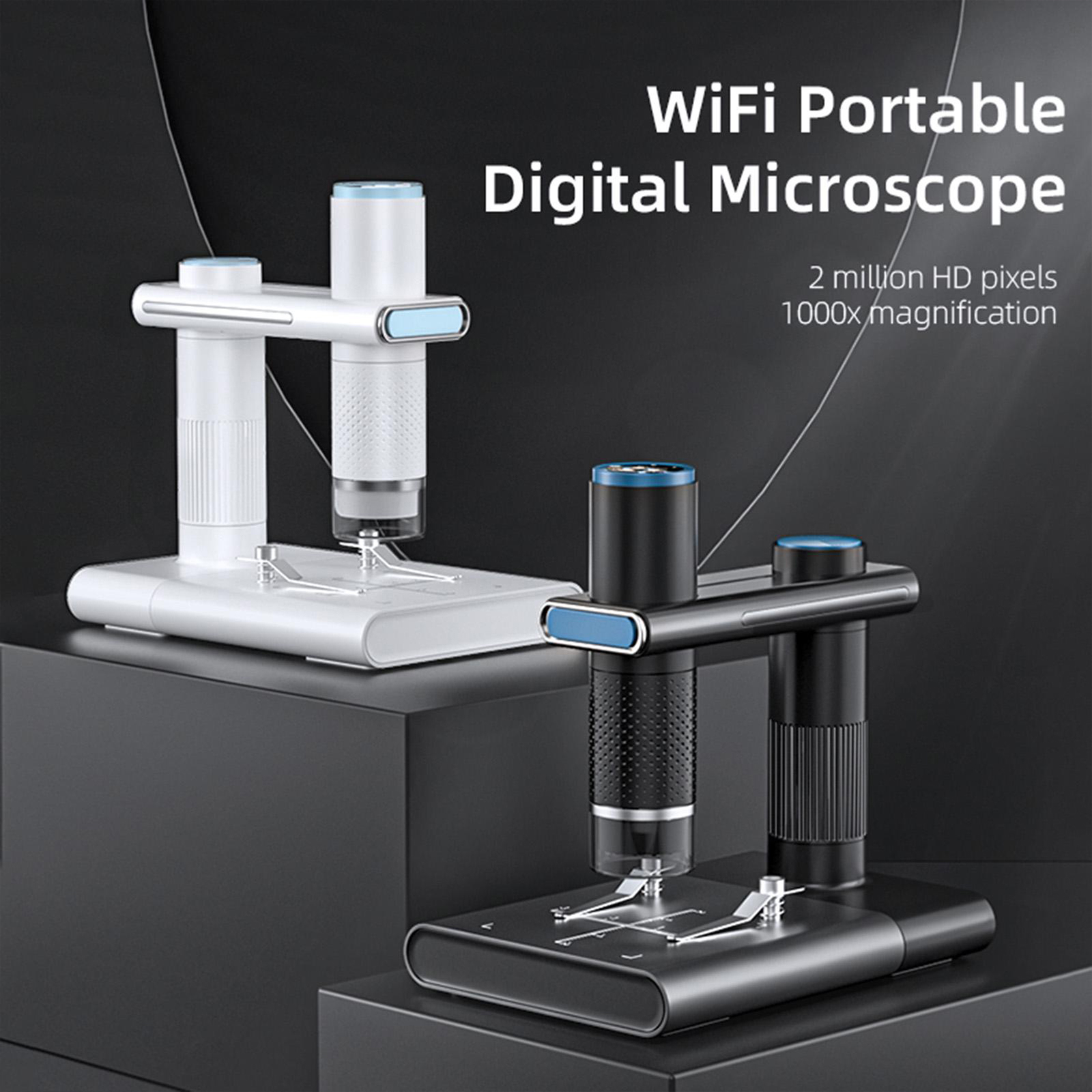 Wireless Digital Microscope Lightweight 1000x Wifi with Stand for Skin Scalp Jewelry Pcb Testing White