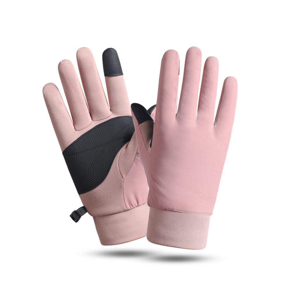 Women Cycling Gloves Non-slip Touch Screen Fleece Lined Warm Windproof for Outdoor Sports Pink M