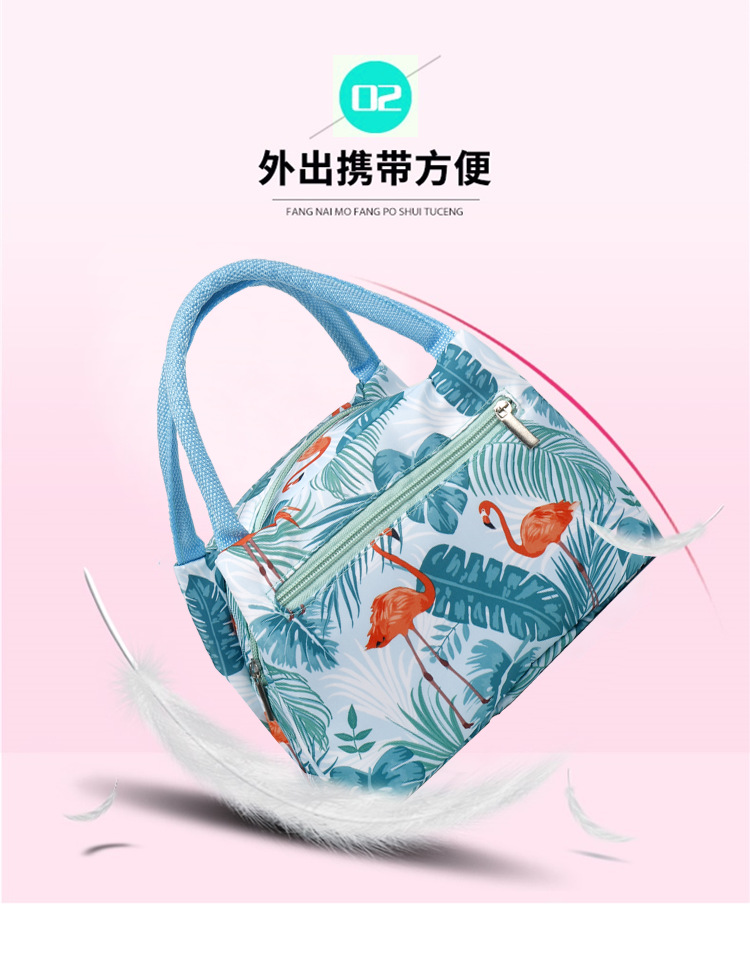 Women New fashion zipper portable insulation bag cartoon waterproof lunch with aluminum foil cactus