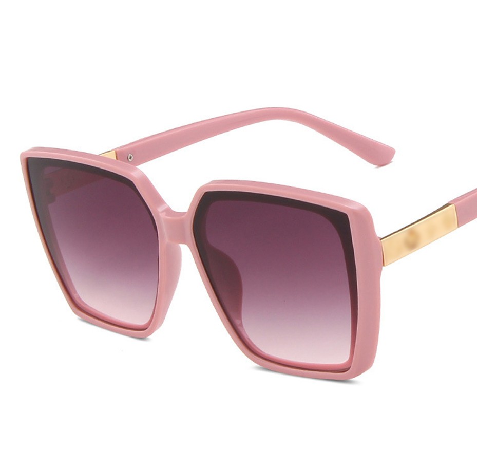 Women Trendy Large Frame Sunglasses Retro Square Sunscreen Glasses For Summer Beach Pink frame gray lens