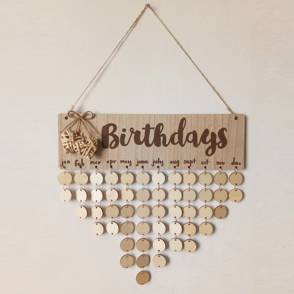 Wooden Calendar Birthdays Round Printed Lowercase Wall Sign Special Dates Reminder Board Home Hanging Decor Gift