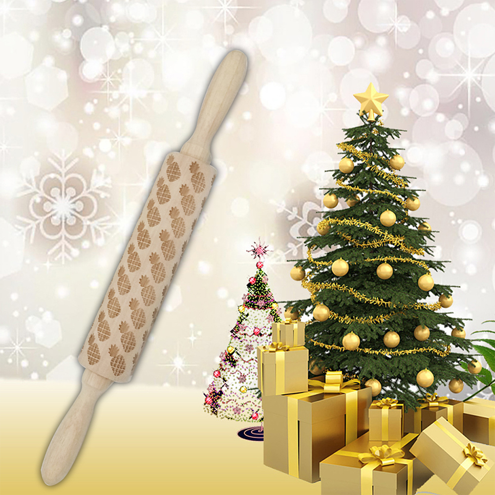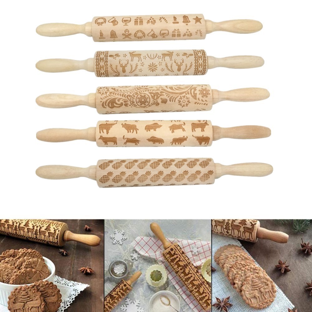 Wooden Christmas Elk Carvings Embossed Rolling Pin Cookie Baking Tool JM01691