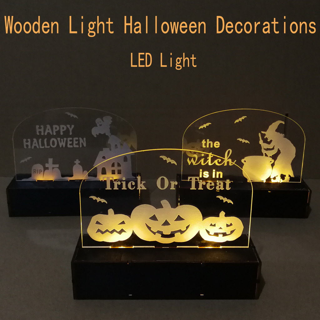 Wooden Halloween Pumpkin/Witch/Haunted House Acrylic LED Light for Home Party Decor