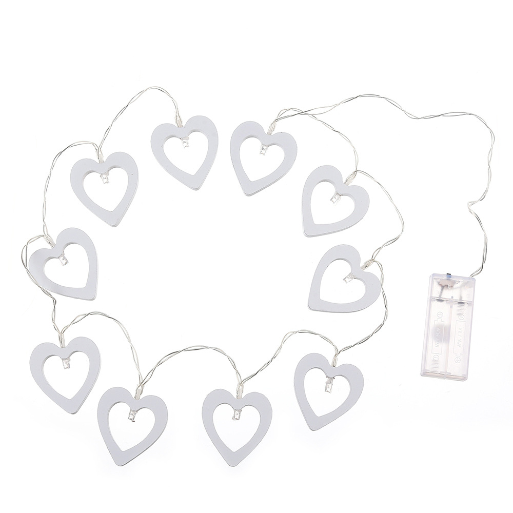 Wooden Heart A String of 10 LED Lights Romantic Valentine’s Day Christmas Birthday Wedding Party Decoration Warm white