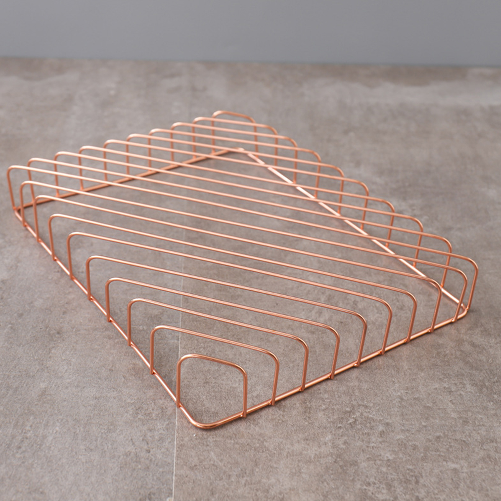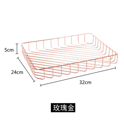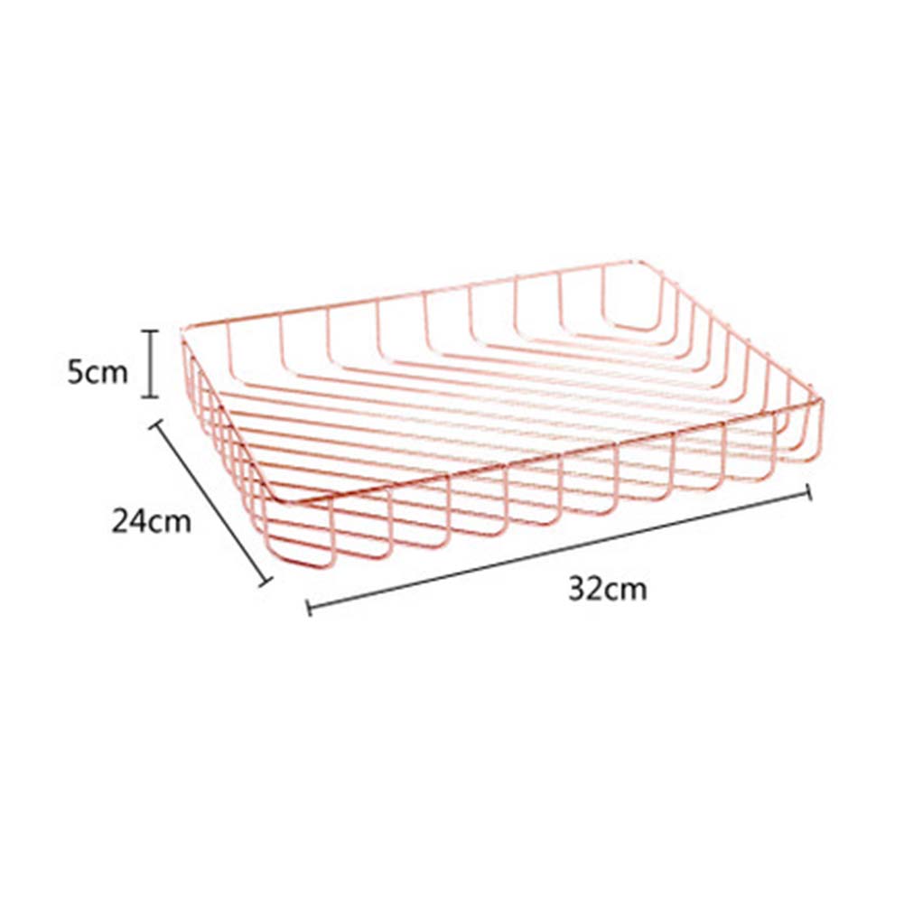 Wrought Iron Storage Basket for Tableware Sundries Organizer Desktop Fruits Snacks Holder Rose gold