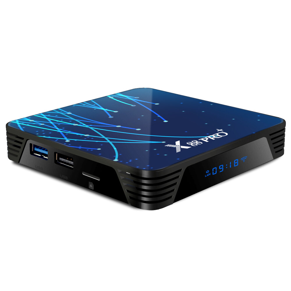 X88 Pro Plus RK3368PRO Octa-Core 4GB RAM 32GB ROM 5G WIFI bluetooth 4.0 Android 9.0 4K H.265 VP9 Boetier TV Bleu – EU
