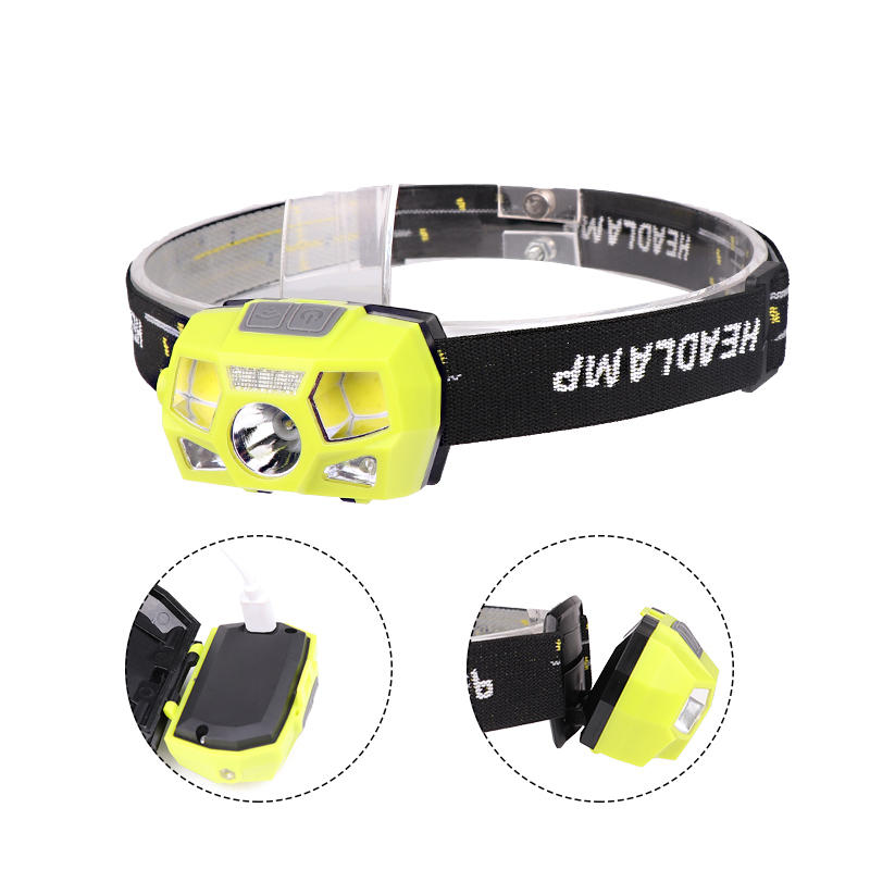 XANES® 1300LM XPE+COB LED Headlamp USB Interface Waterproof Camping Hiking Cycling Fishing Light Portable Flashlight – Yellow