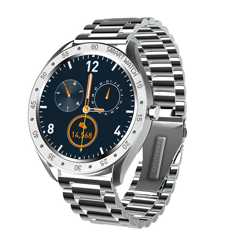 XANESe F13 ecran tactile rond de 1,3 pouces GPS Montre intelligente Bracelet de sport de fitness e luminosite reglable – Acier noir