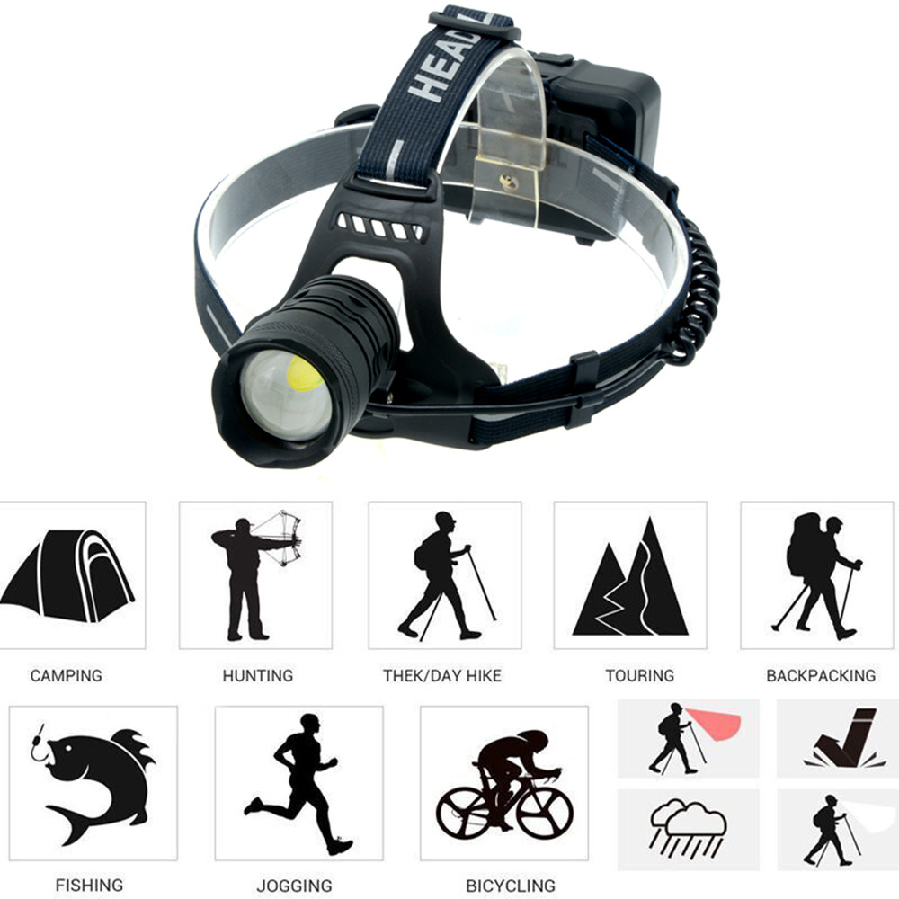 XHP70 USB Charging Strong Light LED Headlight Telescopic Zoom Fishing Positive white light