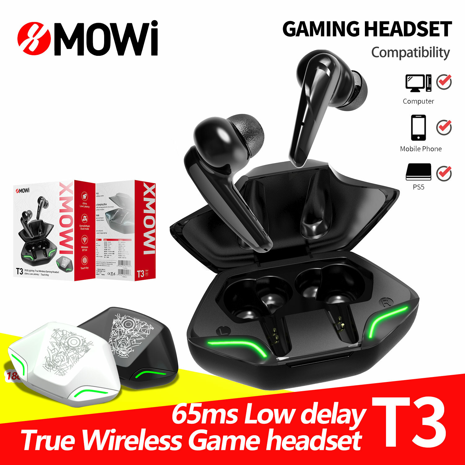 XMOWI TWS Bluetooth ecouteurs Gaming ecouteurs 65ms Faible Latence Stereo eclairage Sports ecouteurs Casque avec Micro – Noir