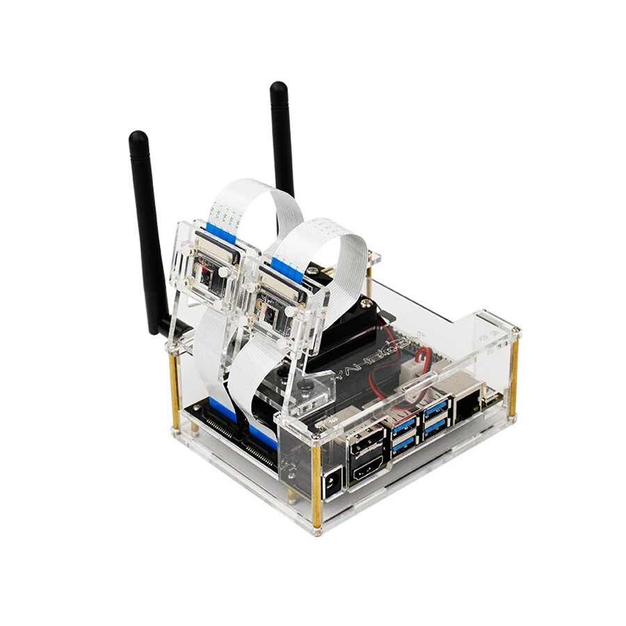 . Descriptions: Cet etui est specialement coneu pour la planche Jeston Nano A02/B01 et est en acrylique transparent. La face avant du boetier est reservee avec une alimentation CC, 2 interfaces d'affichage, 4 interfaces USB, un ceble reseau et des trous d'interface MicroUSB; le cete gauche du boetier possede une zone de trou de ceblage de camera embarquee facile e installer par l'utilisateur; le cete droit avec l'interface GPIO et l'interface Poe permet e l'utilisateur de se connecter au peripherique externe; la face arriere reserve deux trous de l'antenne de la carte reseau sans fil et un trou pour installer la carte TF. Il dispose egalement d'un ventilateur de refroidissement anti-retour et prend en charge la fixation du support de la camera. L'aspect general est beau, pratique et integre. traits: ? Boetier en acrylique pour carte Jetson Nano A02/B01 ? Prise en charge de l'installation de l'antenne de la carte reseau sans fil ? Support fixe le support de la camera ? Prend en charge le ventilateur de refroidissement avec connexion anti-retour ? Conception d'ouverture intelligente, acces facile aux connecteurs peripheriques ?? ? Taille: 110 * 88 * 42 mm Installer la video: cliquez pour ouvrir Emballage inclus: (le tableau et la camera sont juste montres dans l'image) Ventilateur de refroidissement * 1 Composants acryliques * 6 Vis / colonne en cuivre * n Rivet * 4