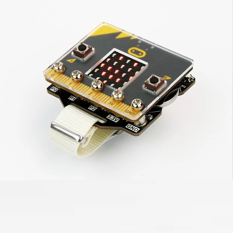 . Tutorial: https://www.yahboom.net/study/wrist:bit Raison recommandee: convient aux utilisateurs qui ont deje une carte micro: bit. La description: Le kit poignet: embout comprend une carte d'extension de fonctions portables, une carte de protection en acrylique, une sangle, 4 piles CR2032, des vis et un tournevis, un manuel et une boete d'emballage. C'est un kit de montre portable specialement coneu pour micro: bit. La carte d'extension contient des peripheriques couramment utilises tels que des lumieres RVB, des buzzers et des moteurs de vibration. Les enfants peuvent utiliser la programmation MakeCode ou Python pour creer des fonctions creatives telles que des podometres, des reveils musicaux et des detecteurs de temperature. Wrist: bit peut egalement etre utilise pour contreler e distance tous nos robots et blocs de construction de la serie micro: bit. En outre, nous fournirons egalement un grand nombre de supports de cours (MakeCode + Python) pour reference. Fonctionnalite: Un kit de montre portable qui integre le plaisir et l'education. Base sur micro: bit, il prend en charge la programmation MakeCode et Python. Le boetier en acrylique transparent peut proteger efficacement le British Broadcasting Corporation micro: bit; Le bracelet de haute qualite peut etre ajuste en fonction du diametre du poignet. equipe de fonctions communes telles que la lumiere RVB, le buzzer et le moteur de vibration. Piles CR2030 de grande capacite, autonomie plus longue. Large application et gameplay multiplex (podometre, reveil, interaction double montre, ciseaux rock-papier, contreleur pour robot micro: bit) Du cours de base au gameplay avance en passant par les voitures robotiques telecommandees, de nombreux didacticiels seront fournis. Le forfait comprend: 1 x bracelet de montre 1 x carte d'extension de fonction portable 1 x coque acrylique 1 x tournevis 5 x vis 4 x bouton Batterie (Non inclus) 1 x boete d'emballage 1 x manuel Photos de details: