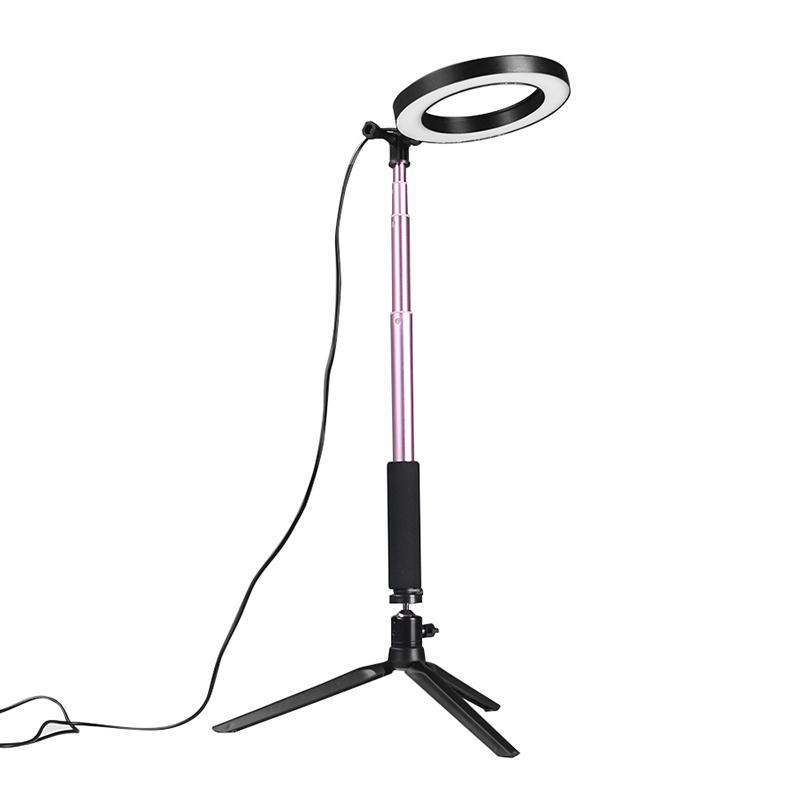 . Fonctionnalites: Dimmable LED SMD Ring Light avec une large plage de variation de 1% e 100%. Conception speciale LED SMD, legere et portable. Entraenement e courant constant, faible perte de puissance. AUCUN rayonnement ultraviolet et infrarouge, faible degagement de chaleur, securite et protection de l'environnement. Longue duree de vie de plus de 50000 heures. Avec bras flexible renforce qui se deplacera librement et ne tombera jamais. Vis e pouce extra long et robuste. Avec filtre e couleurs en plastique: orange + blanc Il est largement applique e la photo photo exterieure, au remplissage de la lumiere e l'interieur, au portrait, e la mode, e l'art du mariage, e la photographie publicitaire, au tournage video, etc. specifications: 3 couleurs reglables, lumiere blanche, lumiere chaude, lumiere douce Interface: 1/4 trou de vis universel Puissance: alimentation 5w 5v Longueur du cordon d'alimentation USB 200cm Materiel: alliage d'aluminium + pc Caracteristiques: Source de lumiere: LED SMD LED Ampoules: 64 pieces Forme: anneau Diametre exterieur: 16 cm Puissance totale: 5W Temperature de couleur: 5500K Dimmable: OUI Plage de variation: 1% -100% Illumination totale: 3600LM IRC (indice de rendu des couleurs):> 83 Hauteur de travail minimum 58 cm La hauteur de travail la plus elevee est de 123 cm Selfie Stick retrecit de 30,5 cm Prolonger la longueur de 95,5 cm Emballage inclus: 1 anneau de sonnerie 1 x beton de selfie 1 x mini trepied 1 x Telephone Clip