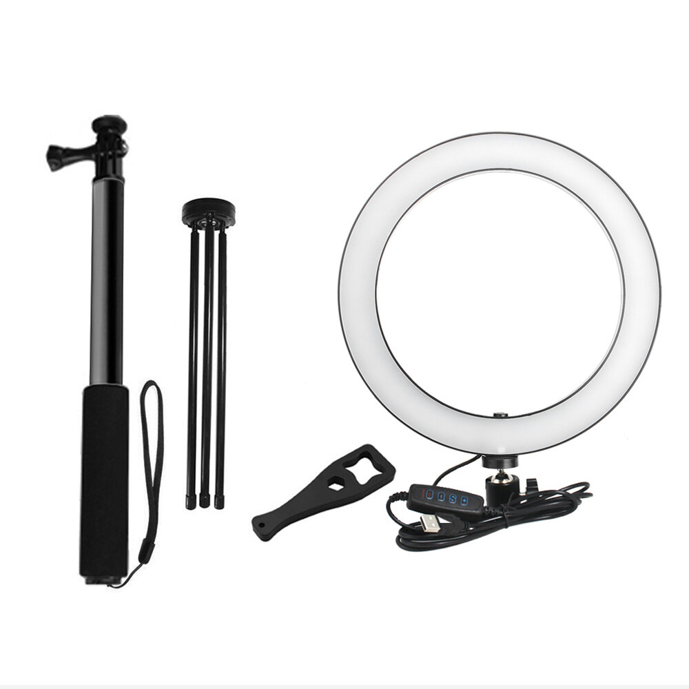 Yingnuost Selfie Stick 5500K Dimmable Video Light 20cm LED Ring Lamp with bluetooth Shutter Wrench for Youtube Tik Tok Live Streaming