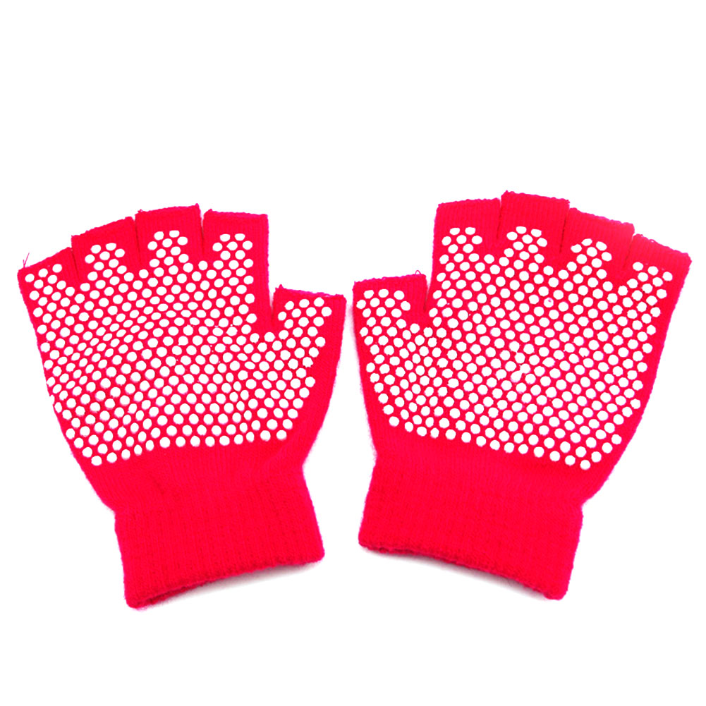 Yoga Half Finger Gloves Non-slip Cycling Gym Anti-skid Training Workouts Hands Protector Rose red_One size