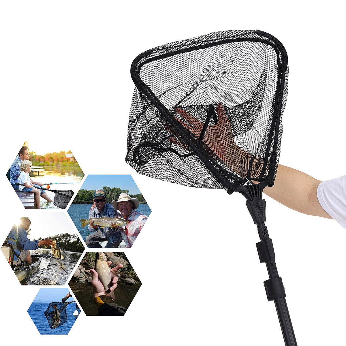 Specifications:ProductMaterialPolyester fiber mesh & aluminum alloy&Thermoplastic polyurethanes(TPU)ColorBlackType A Total length40.9 inches Pole Telescopic length16.9 inches Section3 SectionsFishing Net Size15.3 * 15.7 inchesDepth13 inchesMesh Diameter0.2inchesType BTotal length63.3 inches Pole Telescopic length23.6 inches Section3 SectionsFishing Net Size15.3 * 15.7 inchesDepth13 inchesMesh Diameter0.2inches