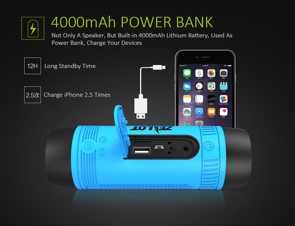 • Spécialement conçu pour les sports de plein air, trois haut-parleurs Bluetooth sans fil multifonctionnels : lampe de poche LED, 4000mAh Power Bank, Bluetooth Speaker.