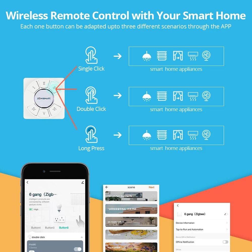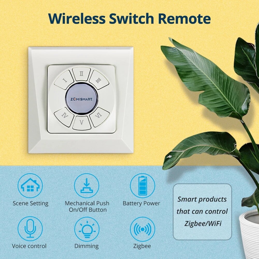 Zemismart Tuya ZB 6 canaux Smart Wireless Switch Wall Remote avec bouton poussoir Fonctionne avec Alexa Google Home
