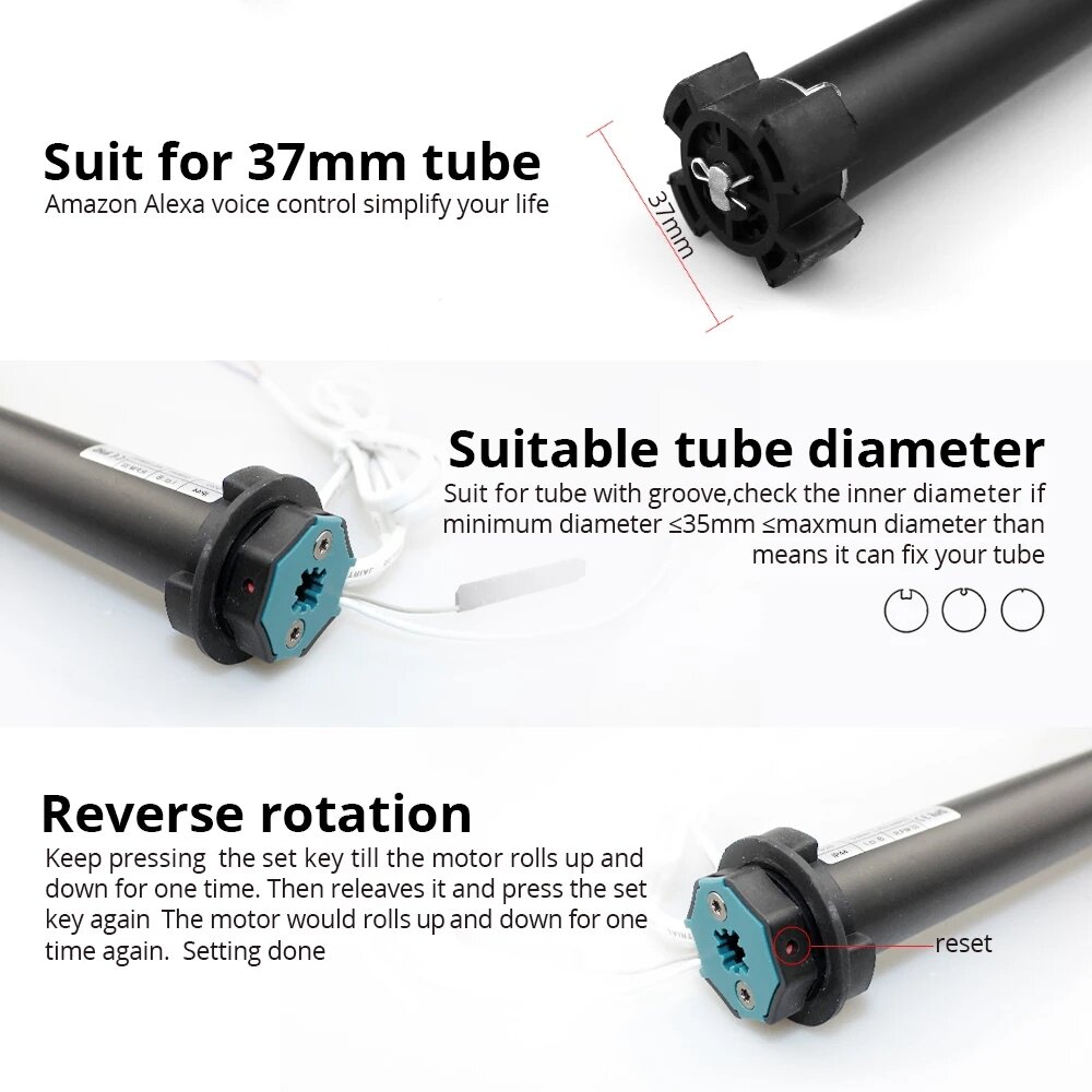 . Caracteristiques: - Pour l'article en Russie ou en Belgique, la telecommande sera expediee au hasard. -Version mise e jour, reglage e distance et reglage de la limite dans APP , facilement et pratique. - Bulit dans le module wifi, fonctionne avec l'application de vie intelligente et intelligente Tuya. - Contrele vocal Alexa et Google Home. - Avec une tension large qui peut fonctionner de 110v e 240v. - Il s'agit d'un moteur e rouleaux wifi pour tube de 36 e 38 mm. - Avec la limite haut / milieu / Dowm pour l'ensemble, rencontrez facilement votre esprit. Emballage inclus: 1 x moteur de rideau 1 x telecommande 1 adaptateur 1 x embout 1 x tracket