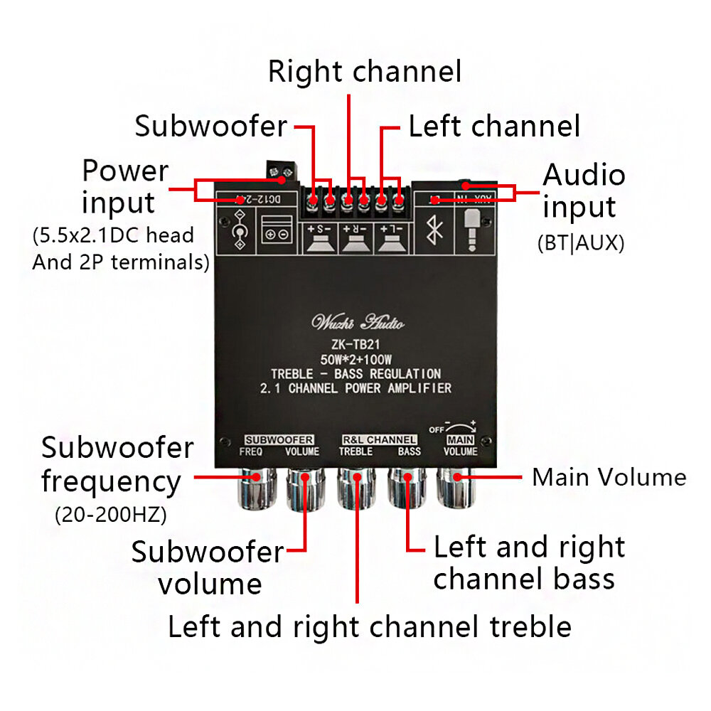 ZK-TB21 TPA3116D2 carte amplificateur de subwoofer bluetooth 5.0 50WX2 + 100W 2.1 canaux amplificateur de basse stereo Audio de puissance